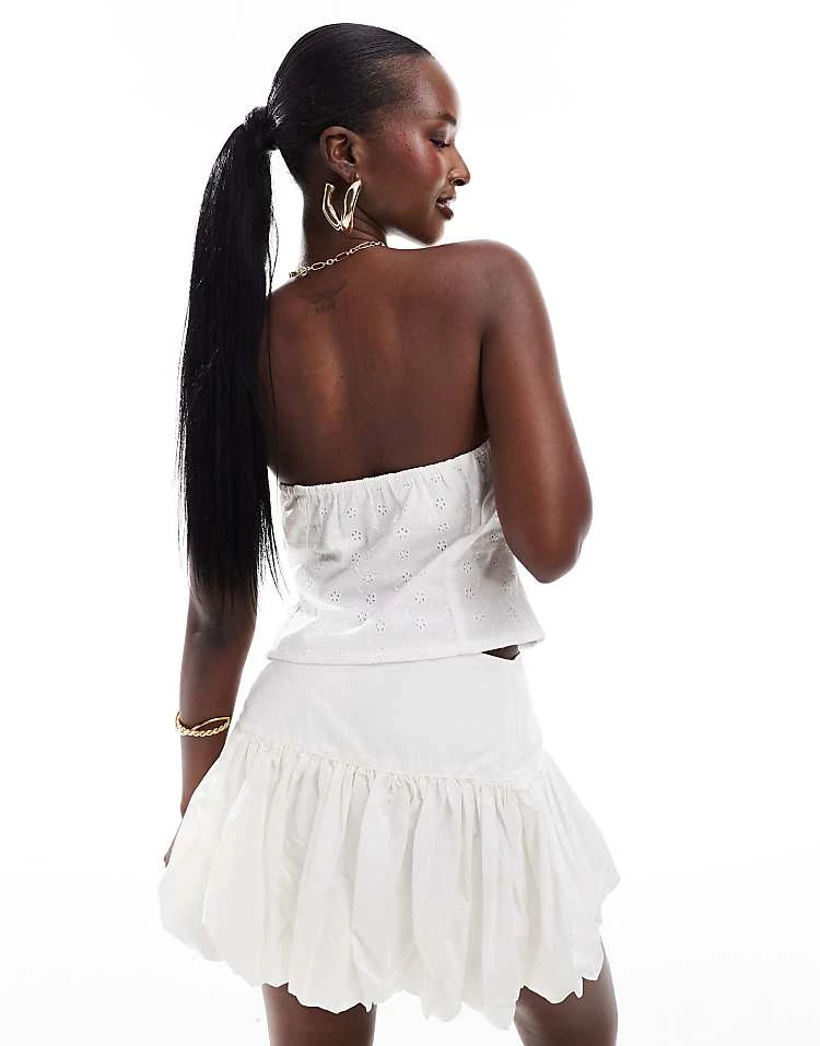In The Style Broderie Bandeau Contrast Ribbon Top In White For Women