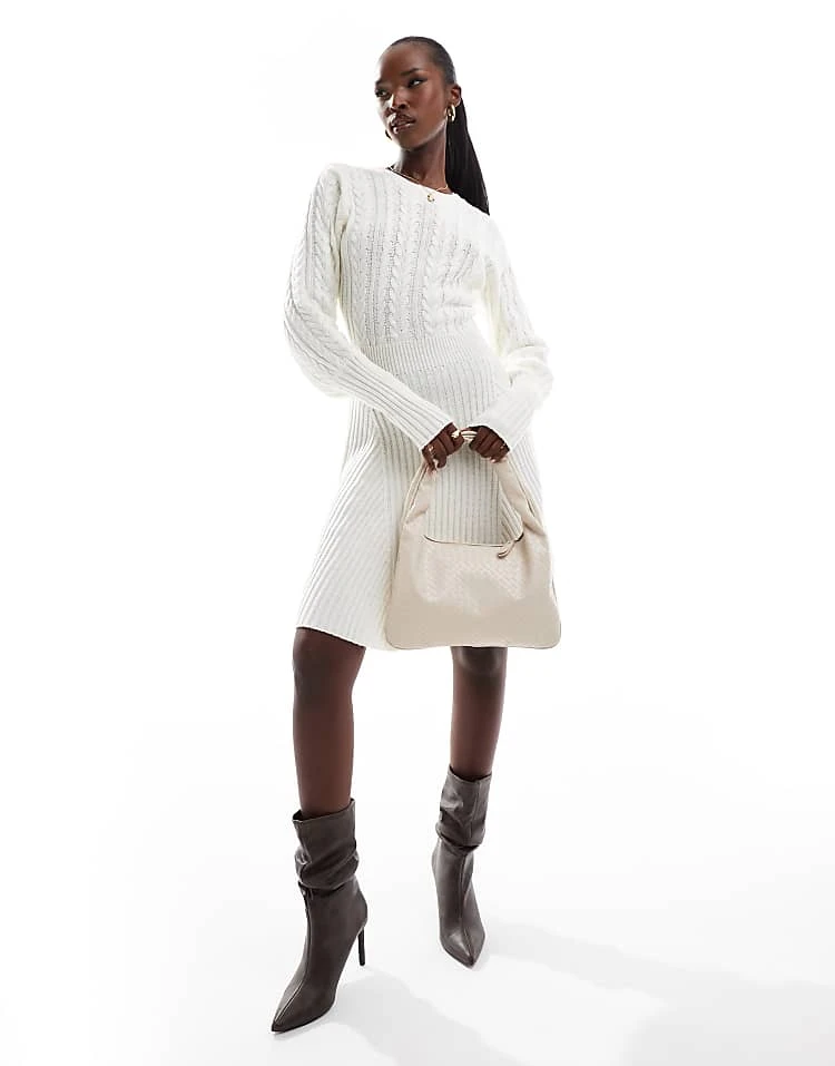 Be the first to review “In The Style Cable Knit Mini Skater Jumper Dress In Cream For Women”