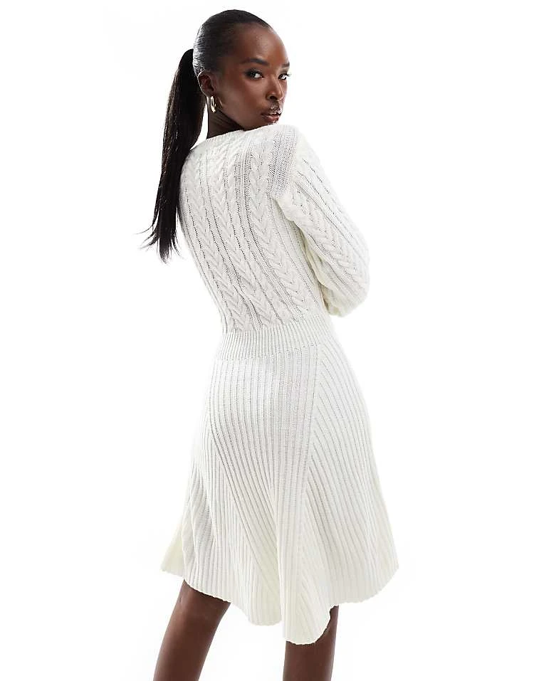 In The Style Cable Knit Mini Skater Jumper Dress In Cream For Women