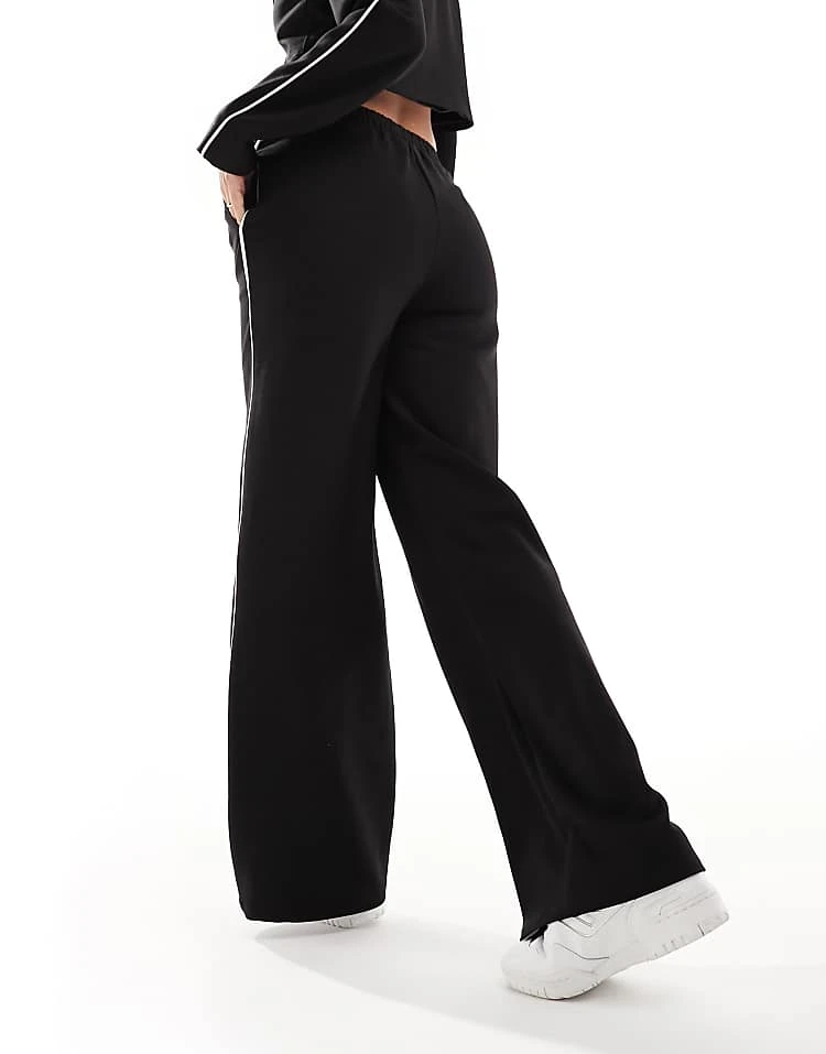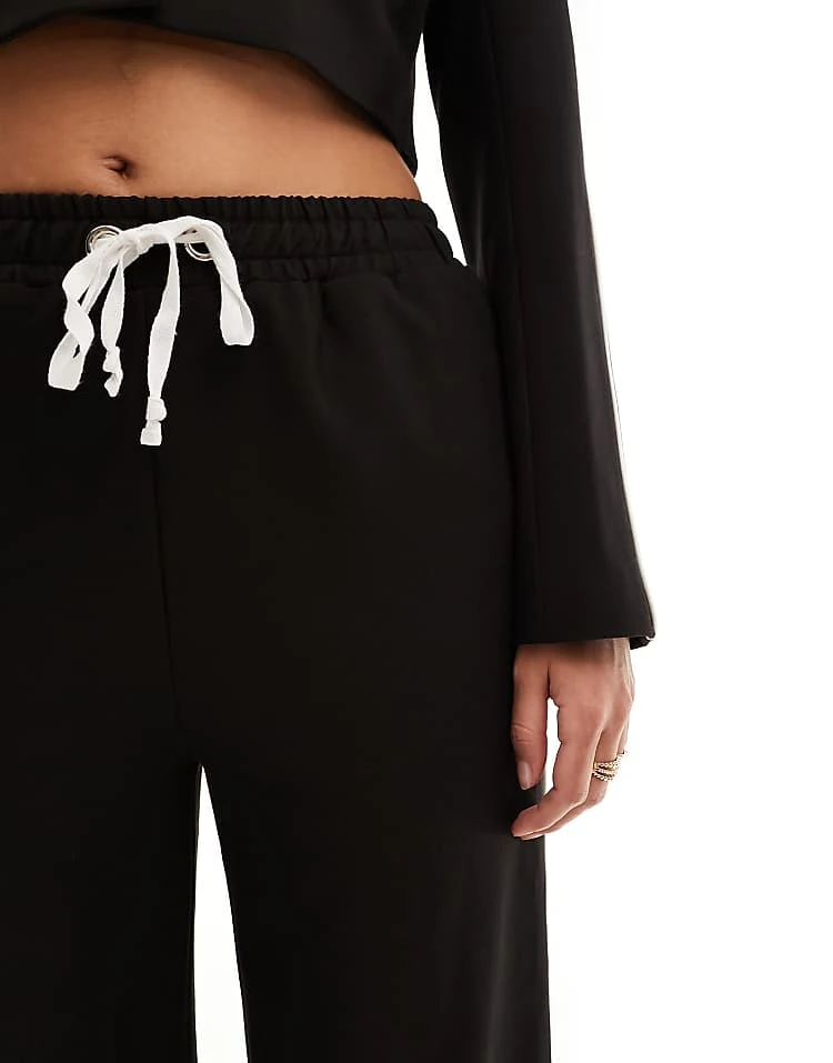 In The Style Contrast Drawstring Waist Wide Leg Side Stripe Trousers Co-ord In Black For Women