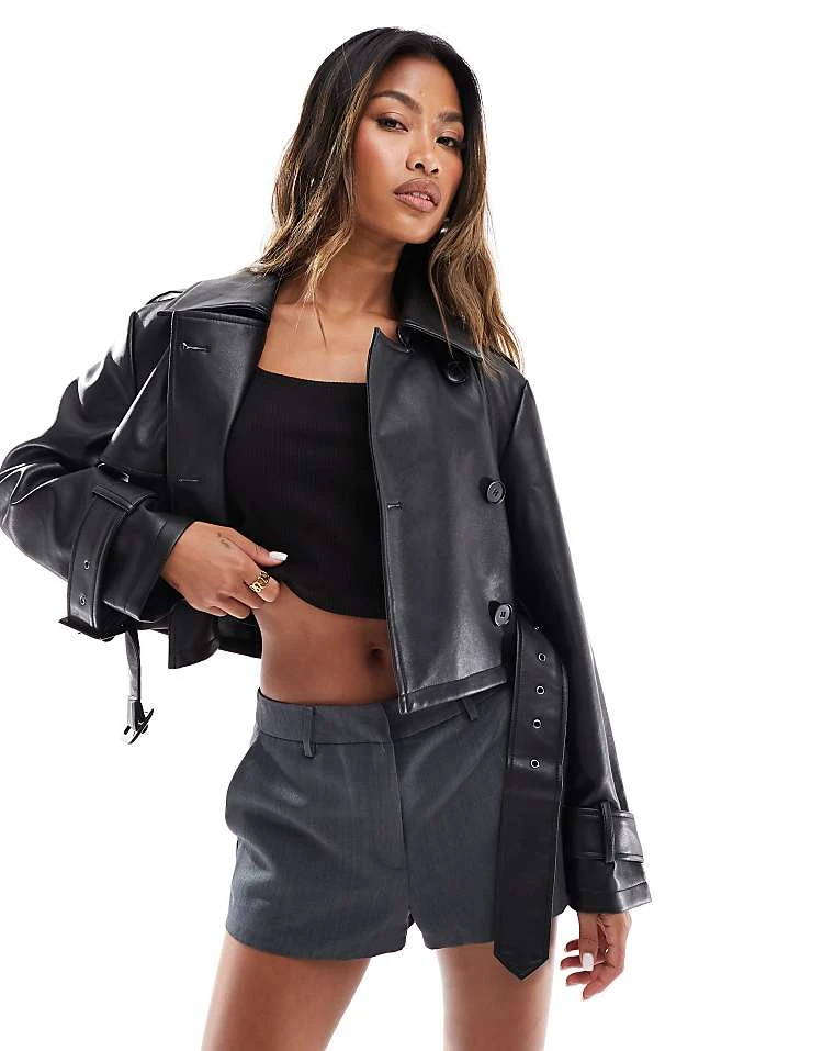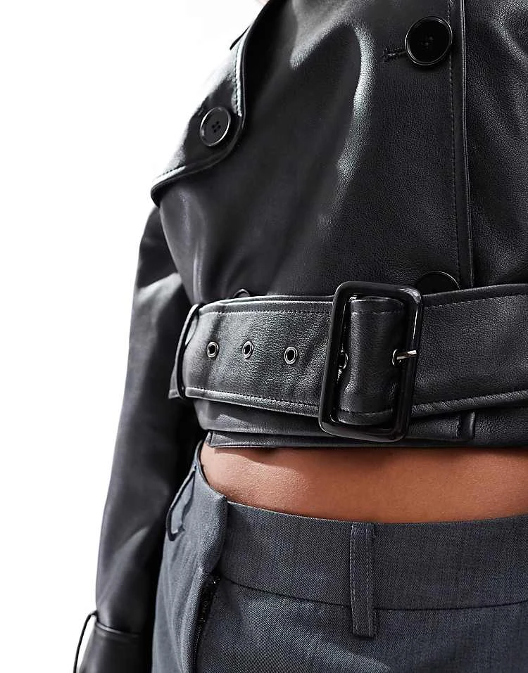 In The Style Cropped Double Breasted Leather Look Jacket In Black For Women