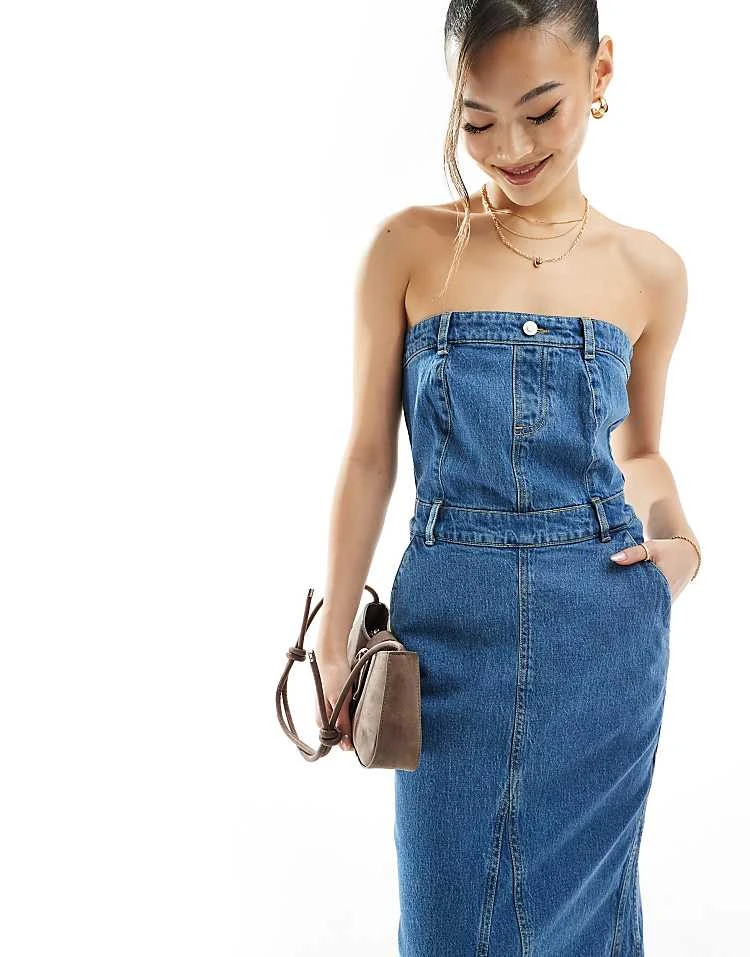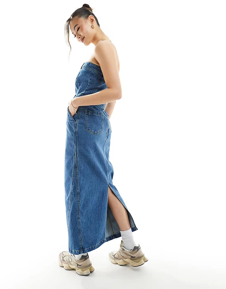 In The Style Denim Bandeau Midaxi Dress In Blue For Women