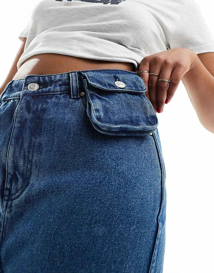 In The Style Denim Cargo Pocket Belt Detail Jeans In Blue For Women