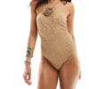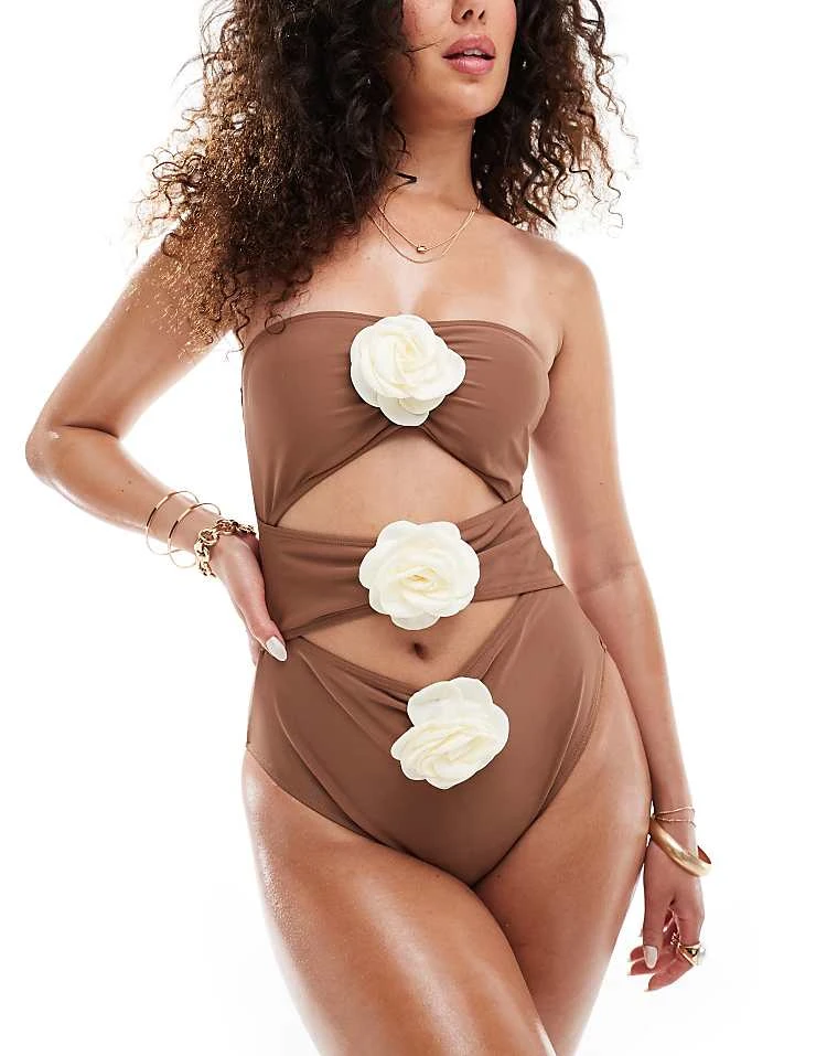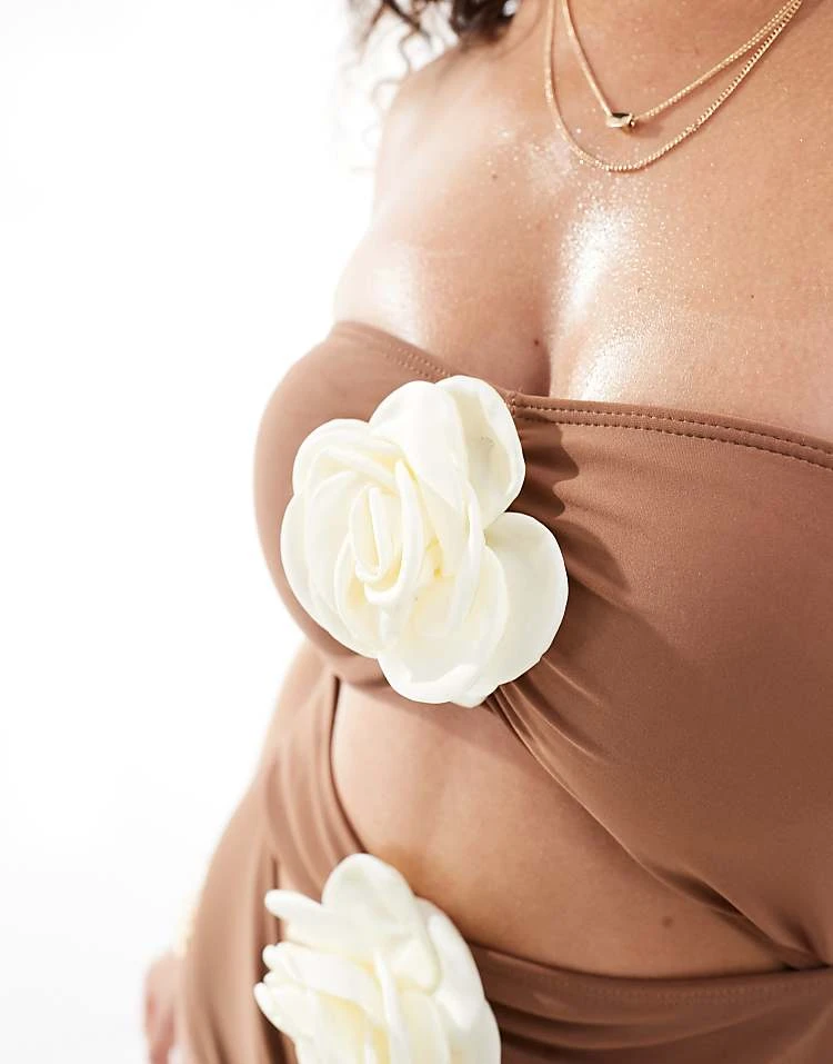 Be the first to review “In The Style Exclusive Bandeau Cut Out Contrast Corsage Swimsuit In Chocolate Brown For Women Pecan”