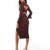 Wrap yourself in comfort with this foldover knitted mini dress. In a soft stone hue, it’s the perfect blend of snug and stylish — ideal for cooler days when you still want to turn heads.