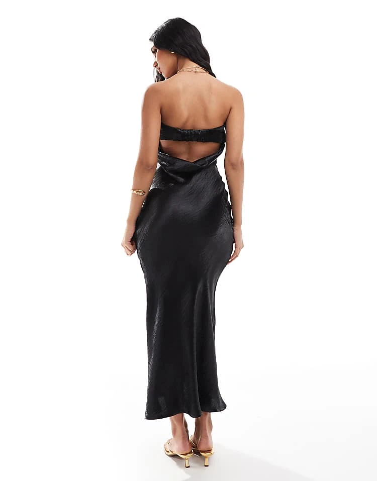In The Style Exclusive Liquid Satin Bandeau Cut Out Back Maxi Dress In Black For Women