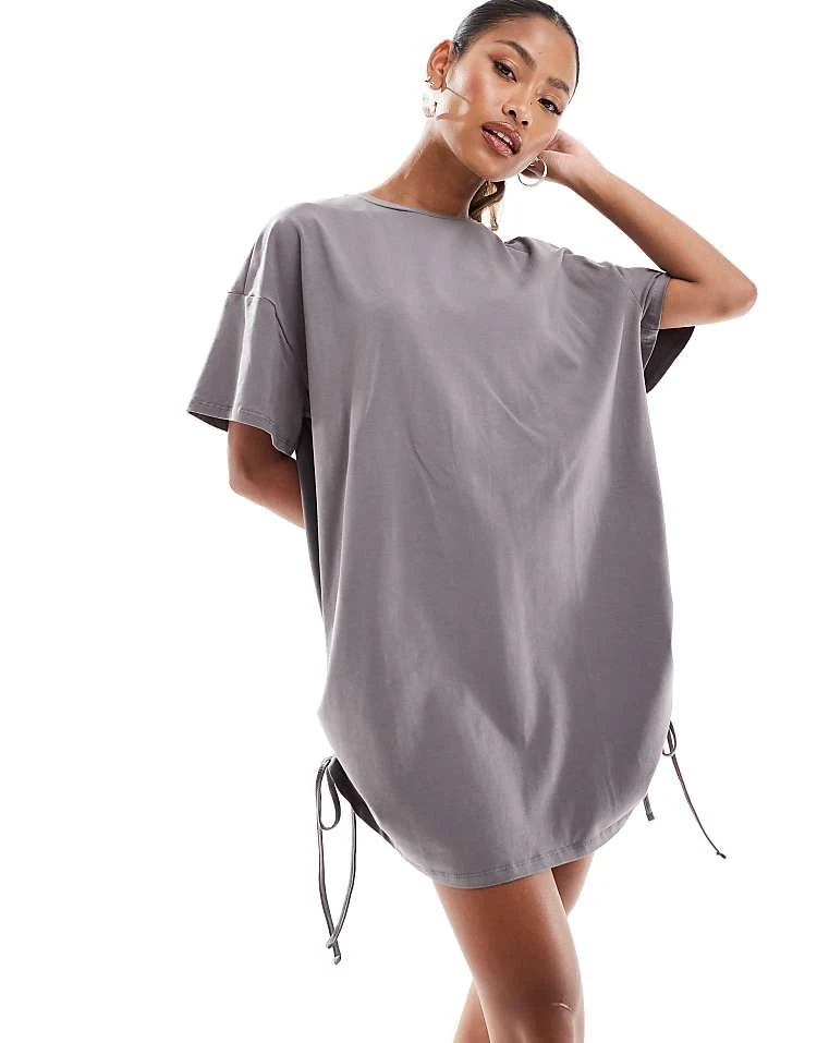 In The Style Exclusive Ruched Side Oversized Mini T-shirt Dress In Charcoal For Women