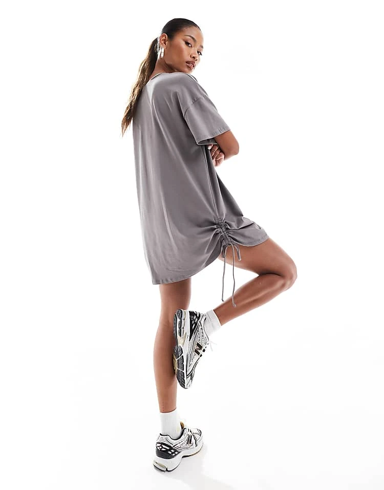 Be the first to review “In The Style Exclusive Ruched Side Oversized Mini T-shirt Dress In Charcoal For Women”