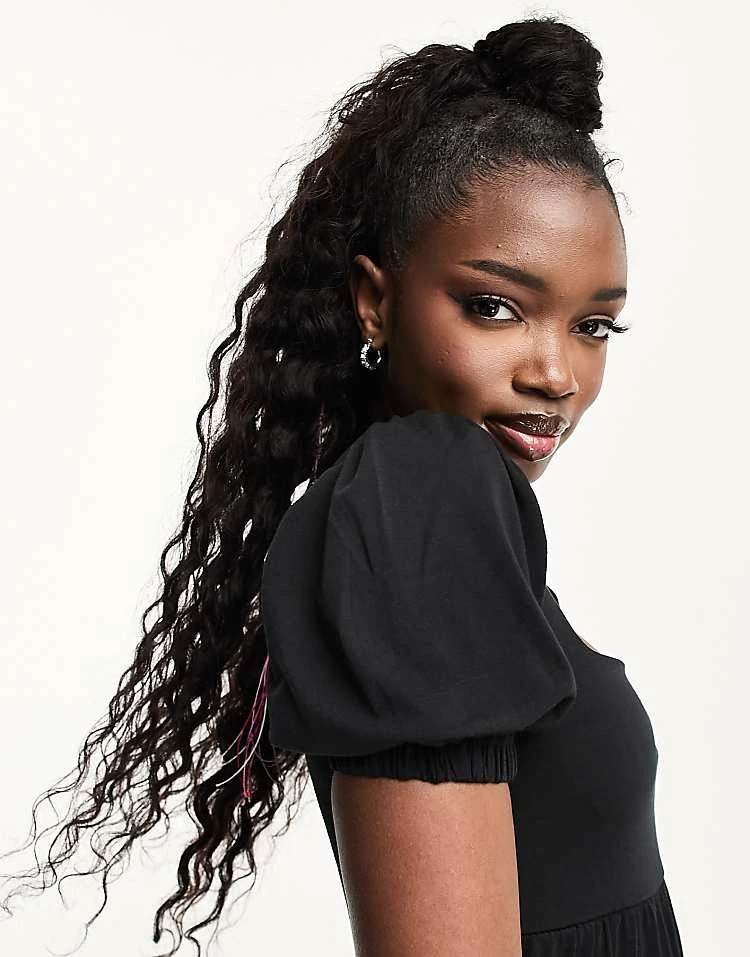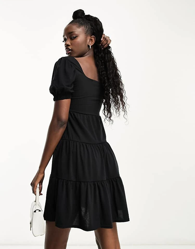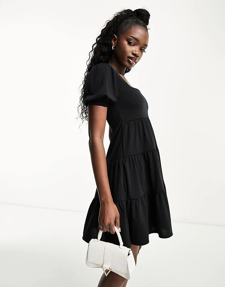 Be the first to review “In The Style Exclusive Tiered Mini Dress With Shirred Back Detail In Black For Women”