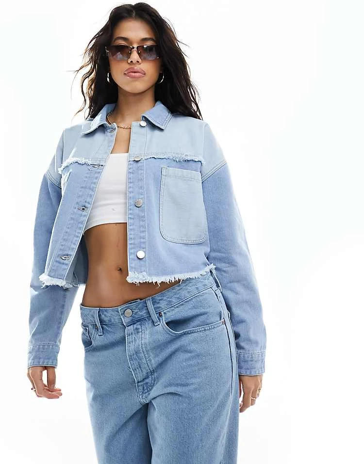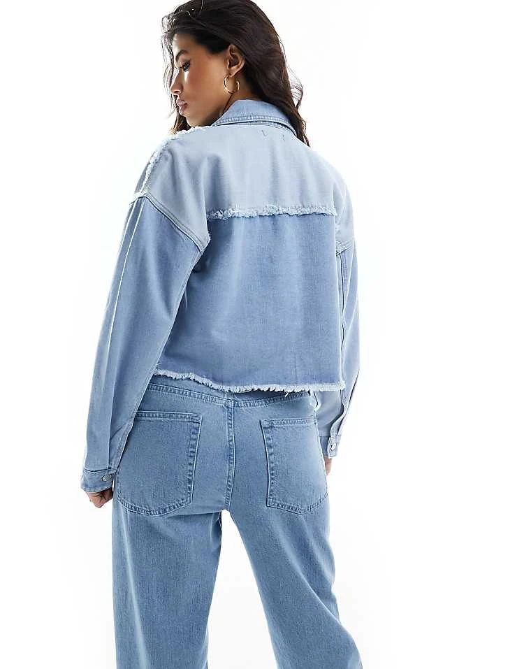 Be the first to review “In The Style Frayed Seam Pocket Detail Denim Jacket In Light Blue For Women”