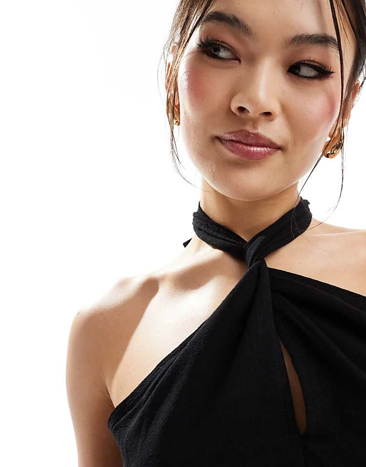 Be the first to review “In The Style Halterneck Wrap Front Crop Top In Black For Women”