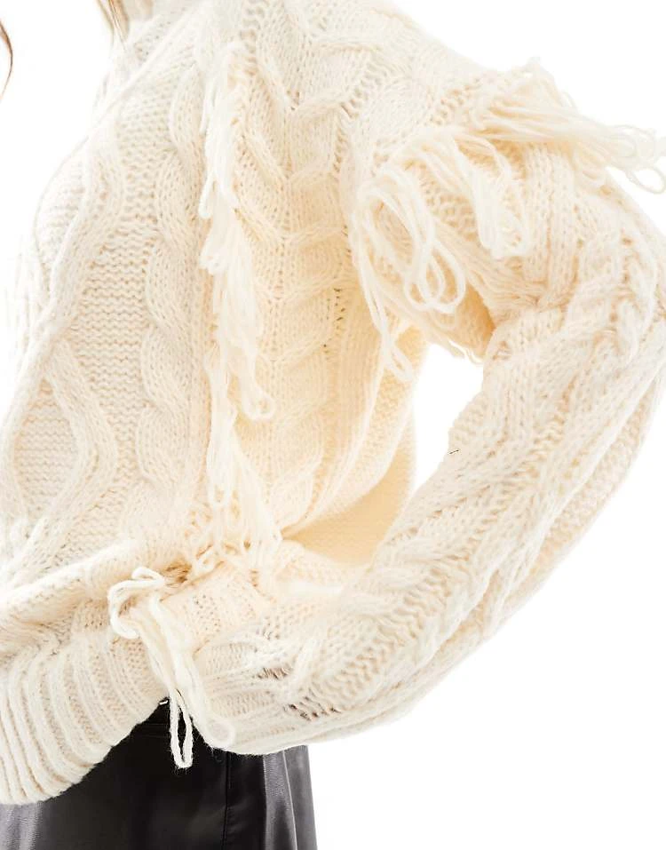 In The Style High Neck Cable Knit Jumper In Cream For Women