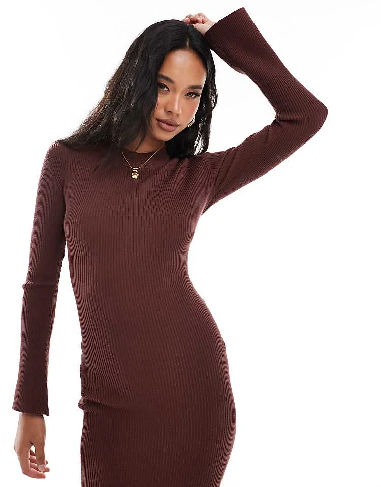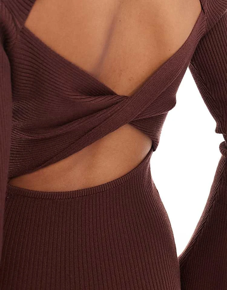 Be the first to review “In The Style High Neck Fluted Sleeve Open Twist Back Mid Jumper Dress In Chocolate For Women”