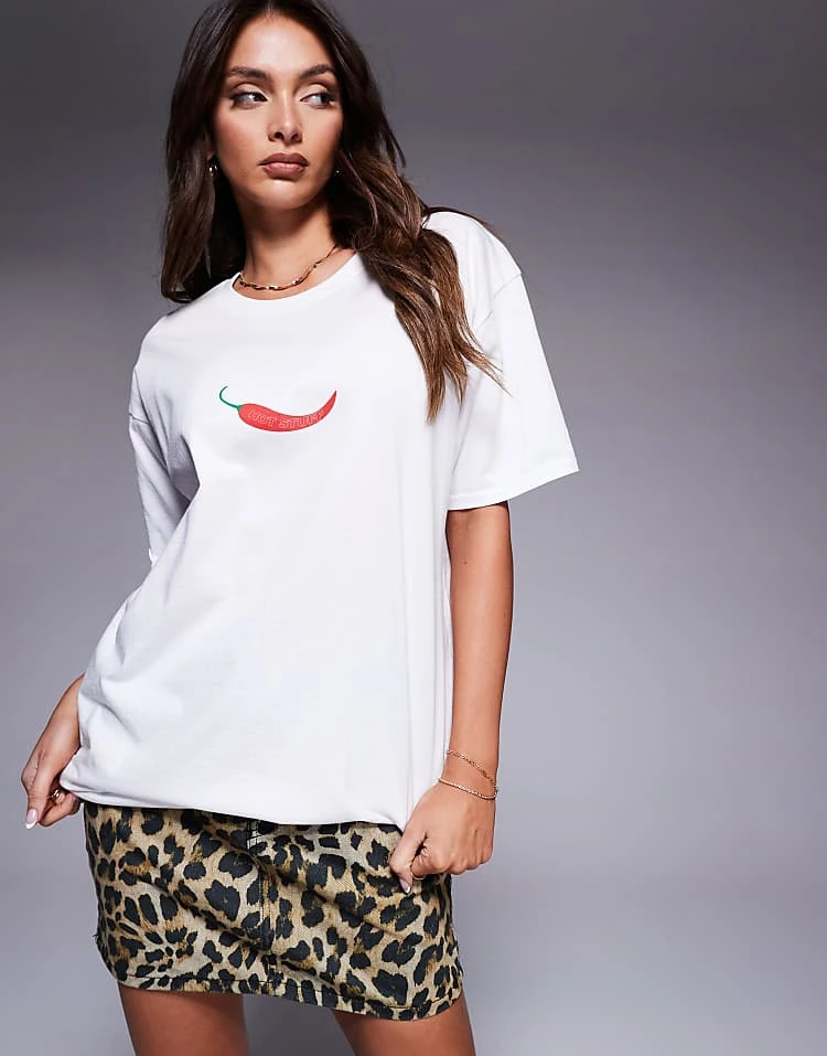 Be the first to review “In The Style ‘hot Stuff’ Chilli Motif Oversized T-shirt In White For Women”
