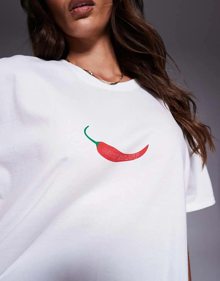 In The Style ‘hot Stuff’ Chilli Motif Oversized T-shirt In White For Women