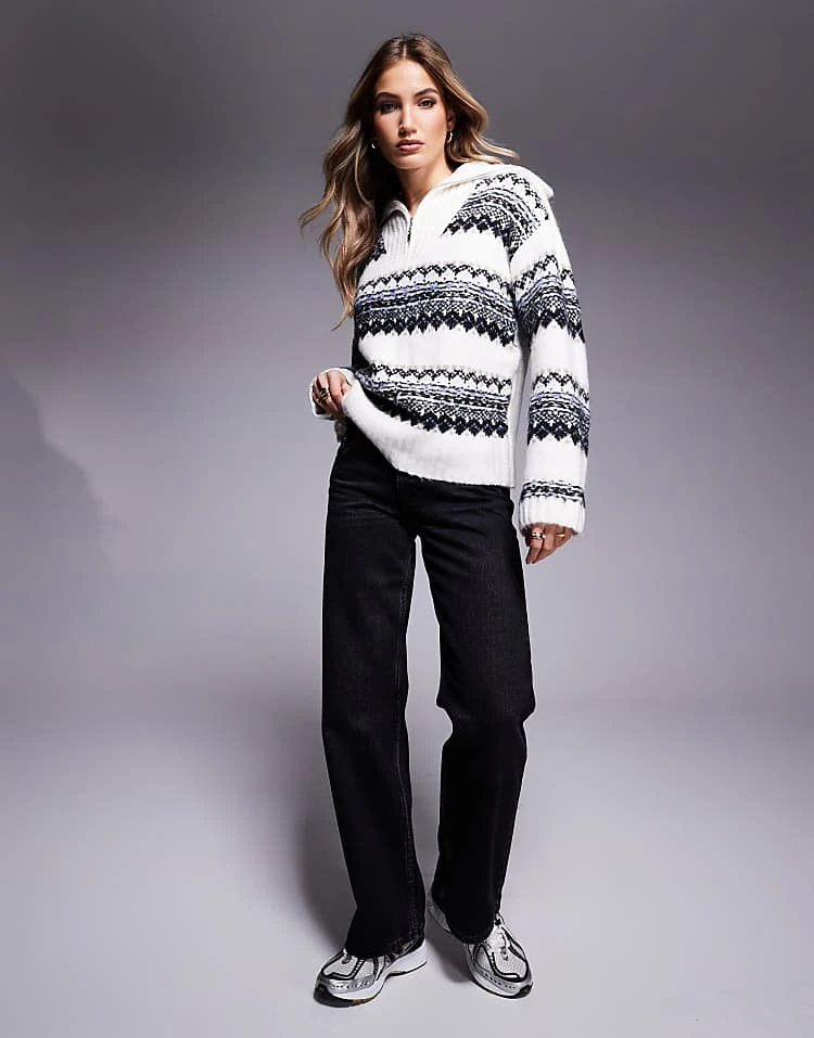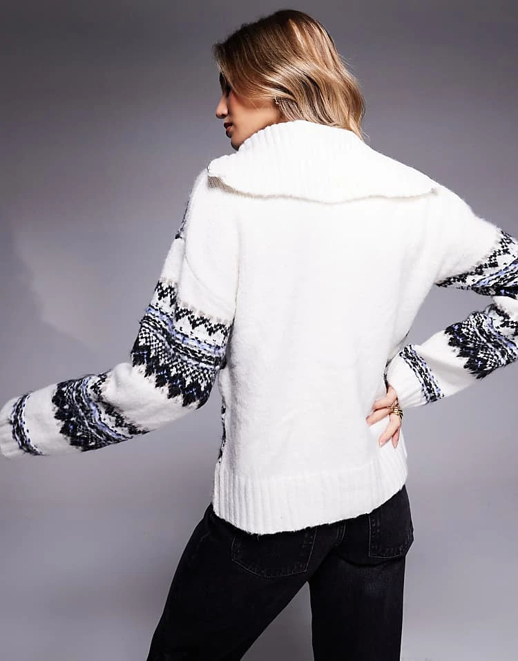 Be the first to review “In The Style Knit Half Zip Jumper In Cream Fairisle Print For Women Cream Print”
