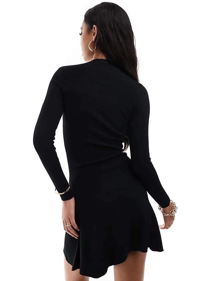 In The Style Knitted High Neck Mini Skater Jumper Dress In Black For Women