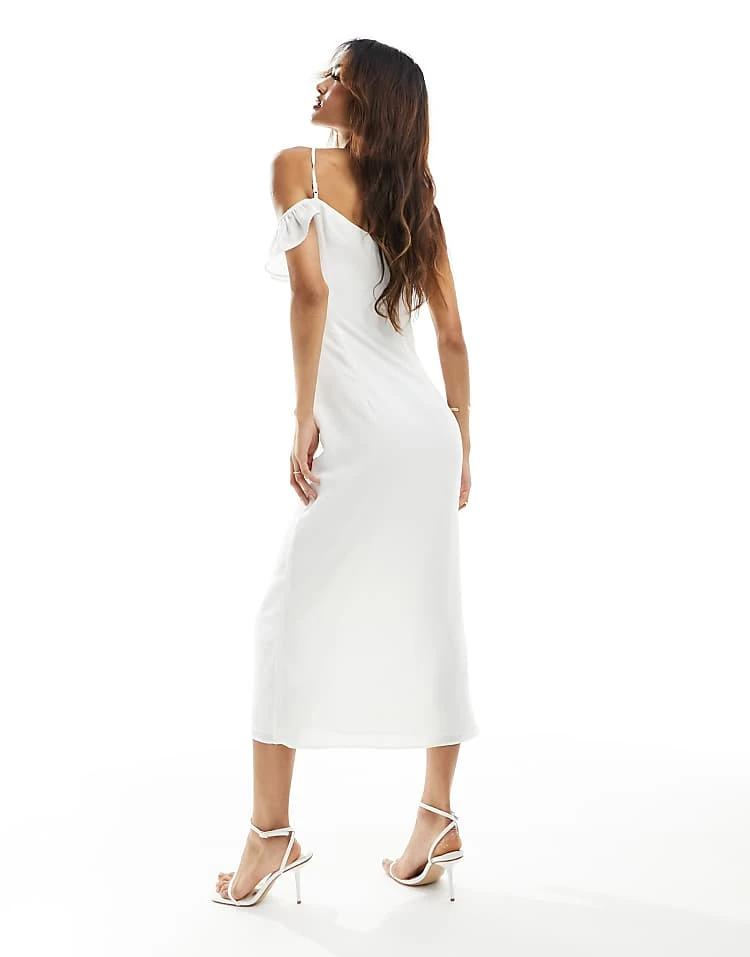 In The Style One Shoulder Frill Detail Midi Dress In White For Women