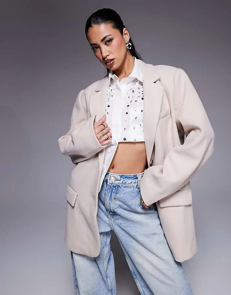 Be the first to review “In The Style Oversized Double Pocket Blazer In Cream For Women”