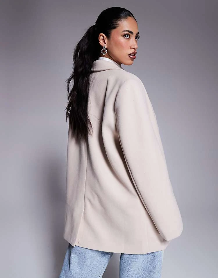 In The Style Oversized Double Pocket Blazer In Cream For Women