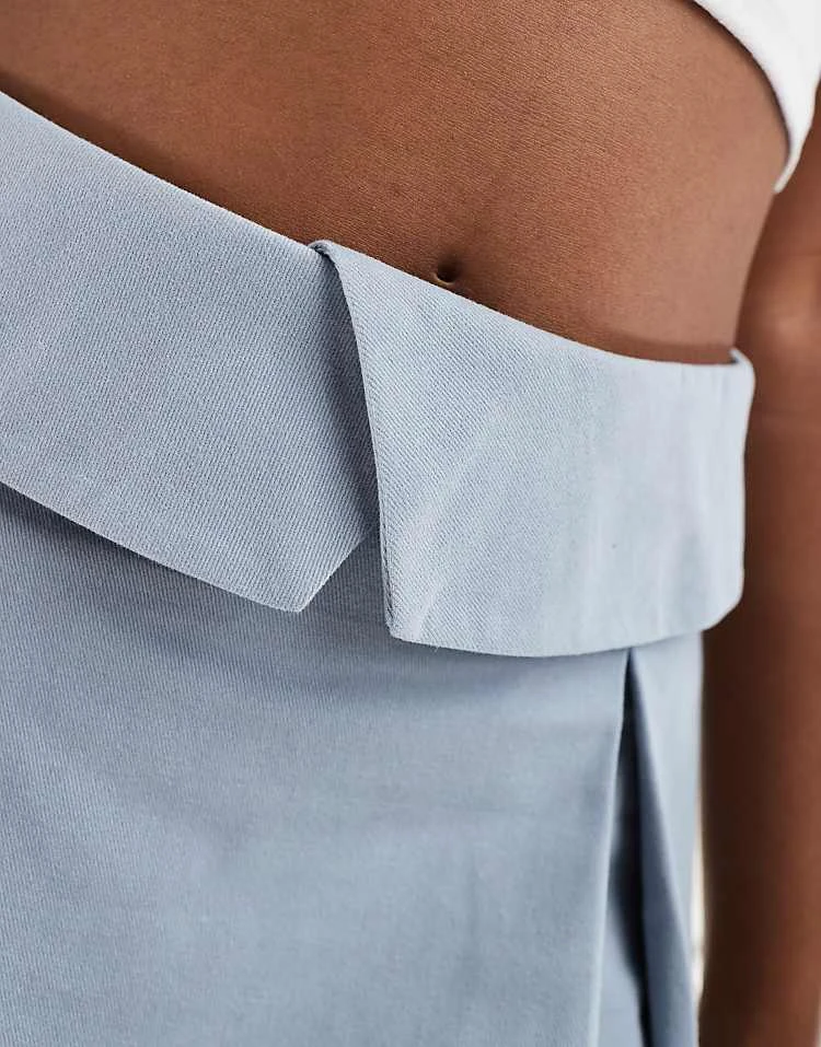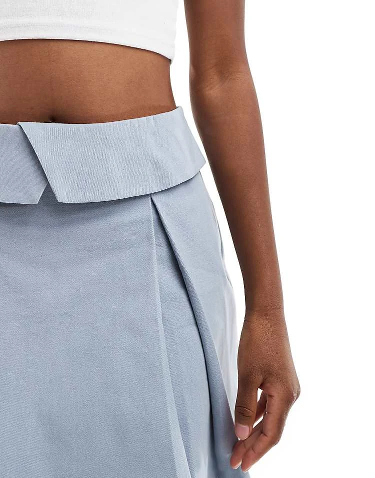 In The Style Pleated Fold Over Waist Mini Skirt In Baby Blue For Women Light Blue