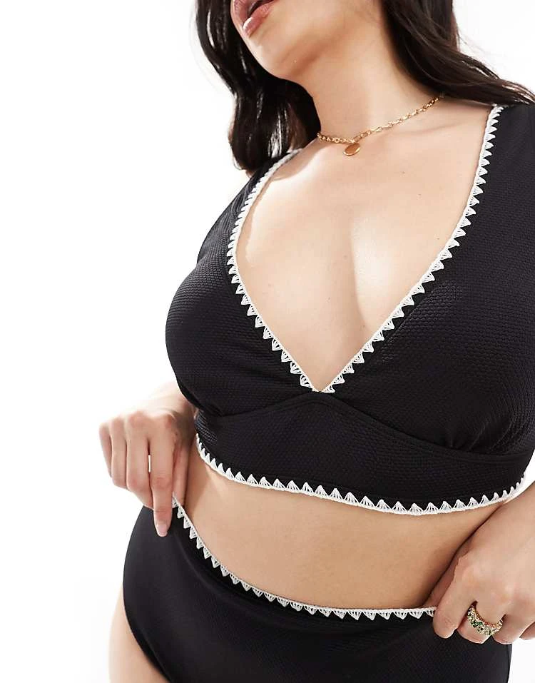 In The Style Plus Contrast Stitch Bikini Top Co-ord In Black For Women