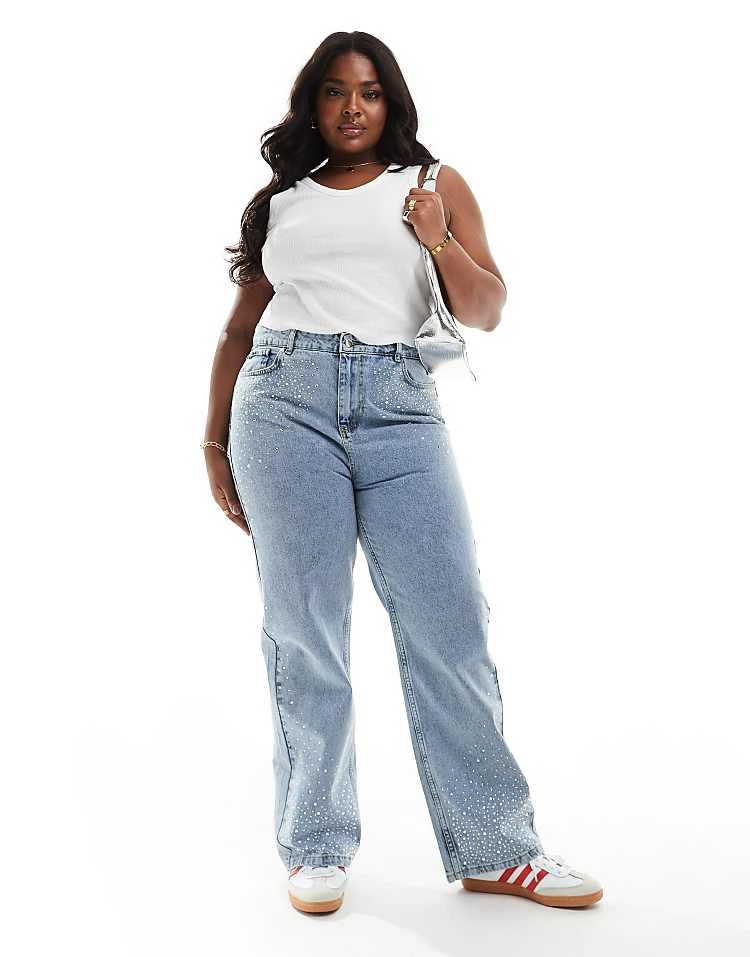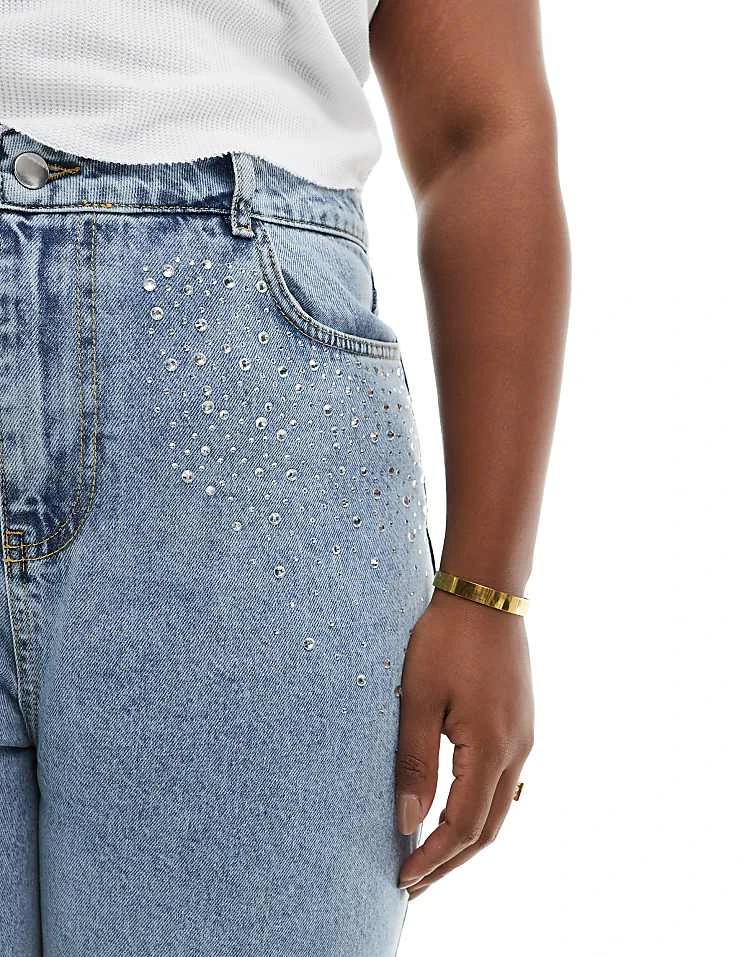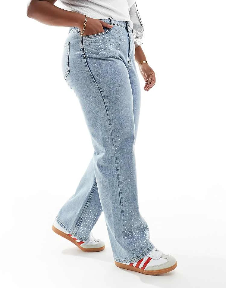 Be the first to review “In The Style Plus Diamante Detail Wide Leg Jeans In Light Blue For Women”