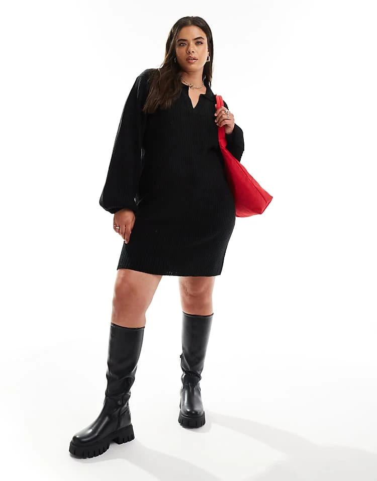 Be the first to review “In The Style Plus Exclusive Knitted Collar Detail Mini Jumper Dress In Black For Women”