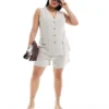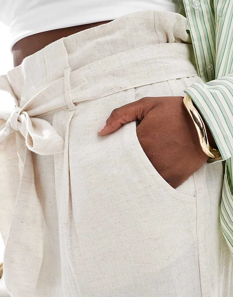 Be the first to review “In The Style Plus Linen Look Belted Shorts In Stone For Women”