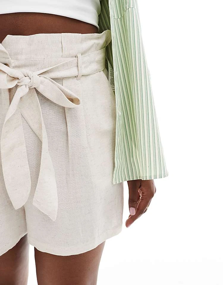 In The Style Plus Linen Look Belted Shorts In Stone For Women
