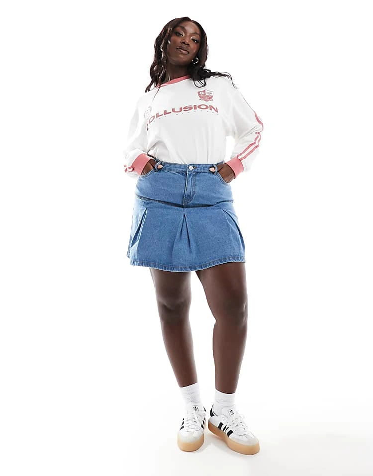 Be the first to review “In The Style Plus Pleated Denim Mini Skirt In Blue For Women”