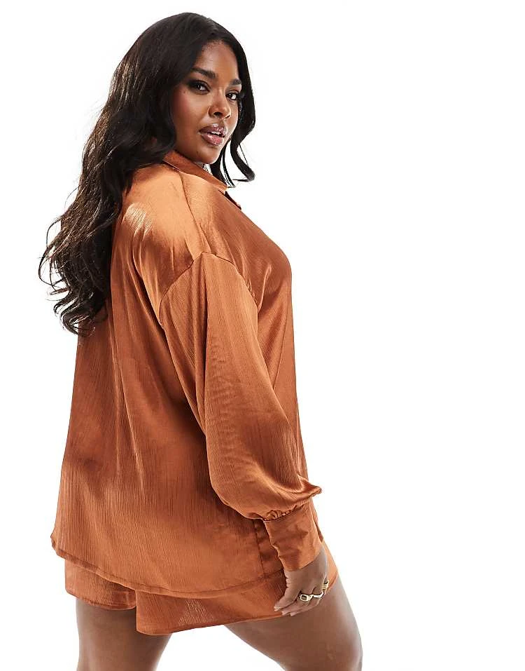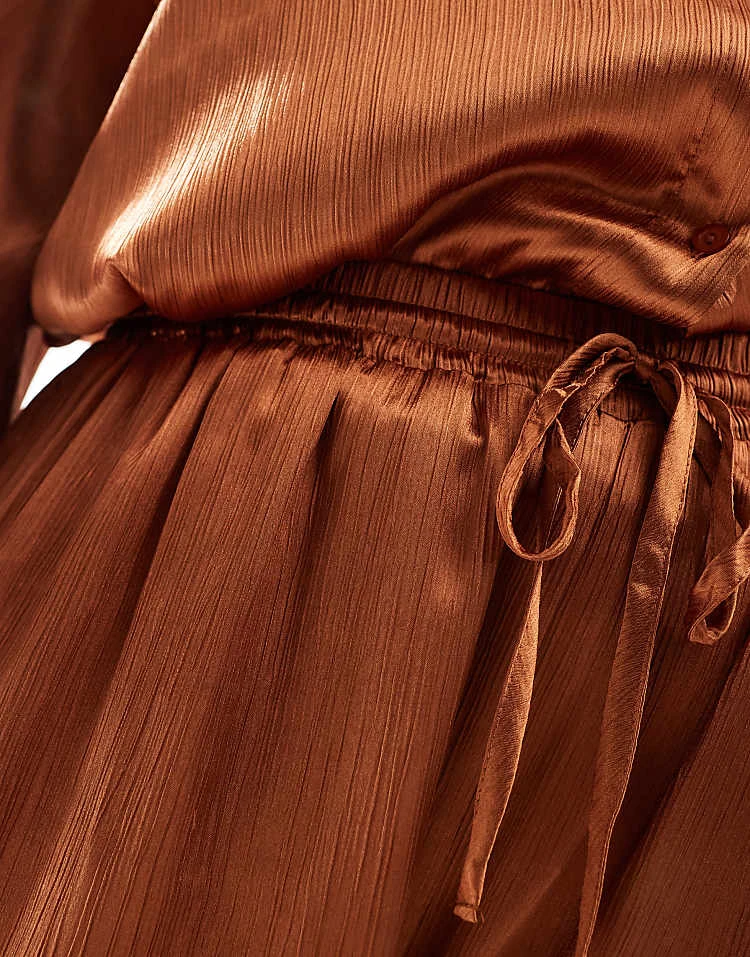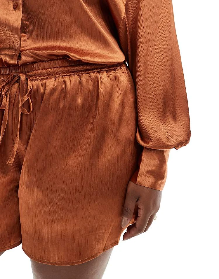 In The Style Plus Satin Drawstring Shorts Co-ord In Rust For Women