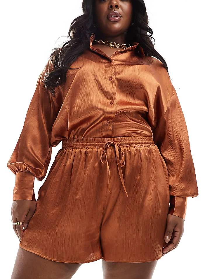 Be the first to review “In The Style Plus Satin Drawstring Shorts Co-ord In Rust For Women”