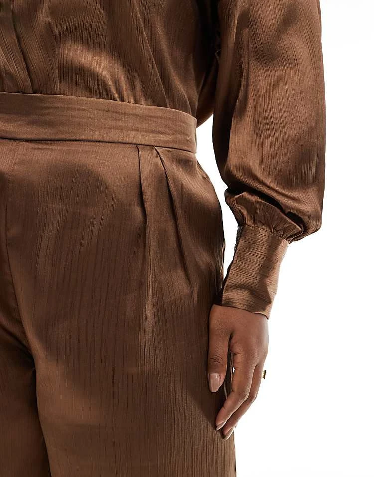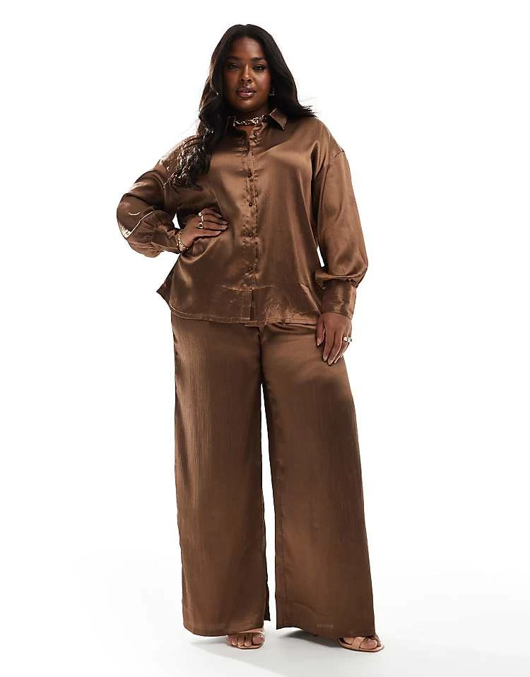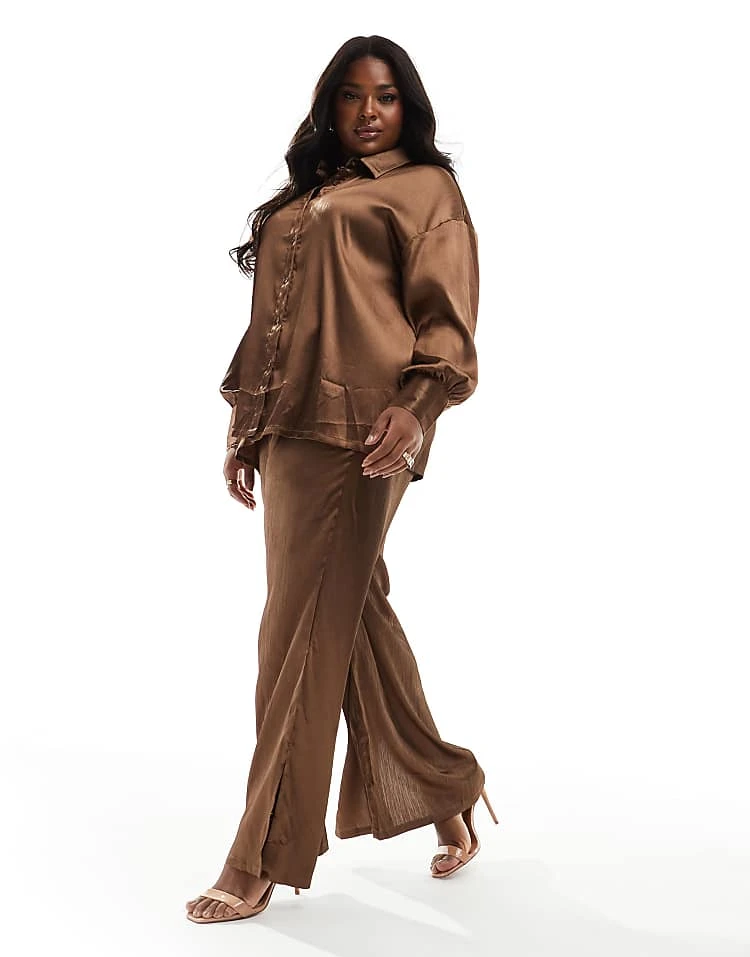 In The Style Plus Satin Trouser Co-ord In Mocha For Women
