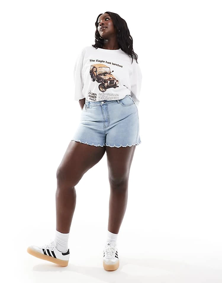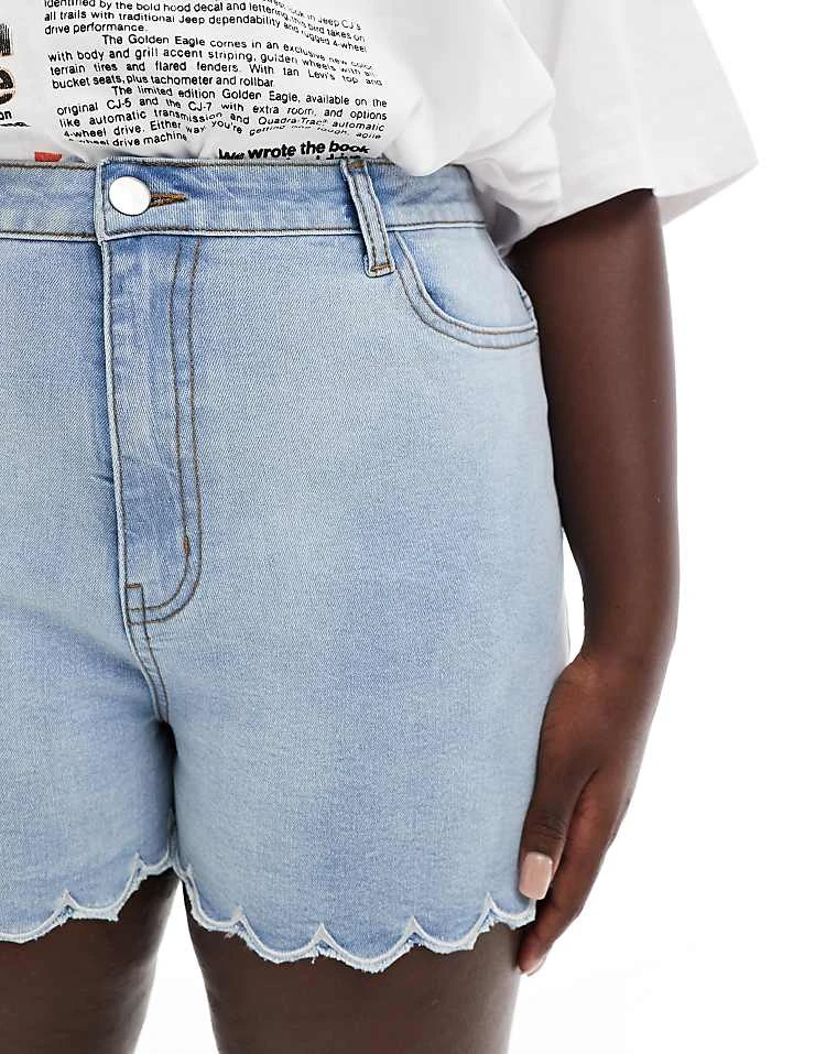 Be the first to review “In The Style Plus Scallop Edge High Waisted Denim Shorts In Light Blue For Women”
