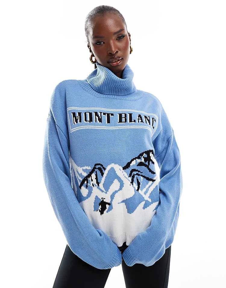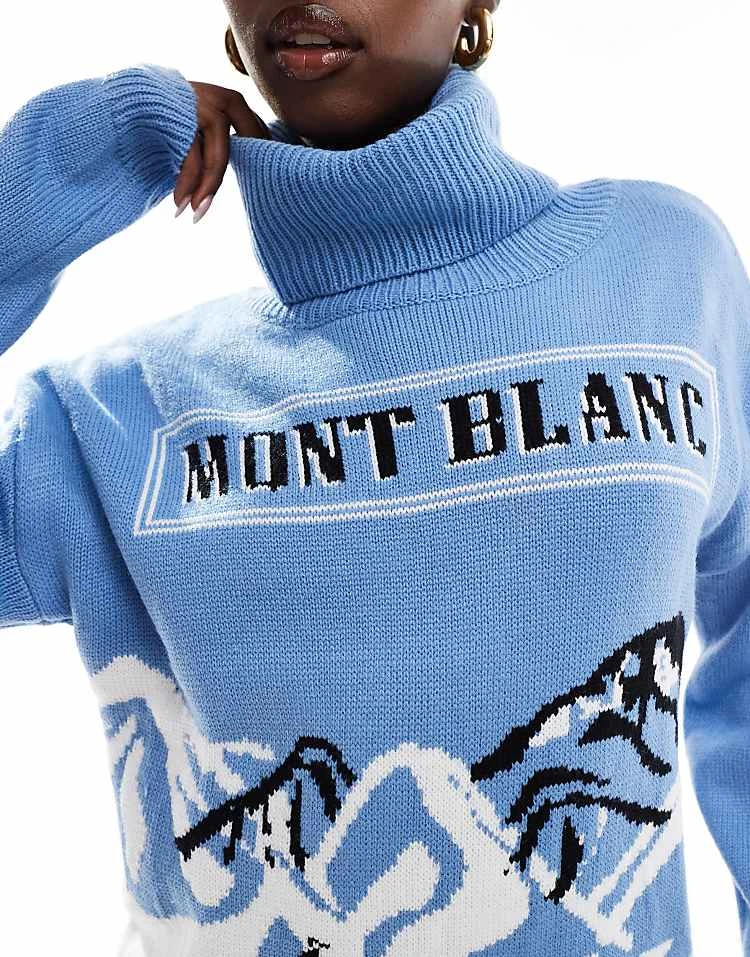 In The Style Roll Neck Mont Blanc Motif Jumper In Blue For Women