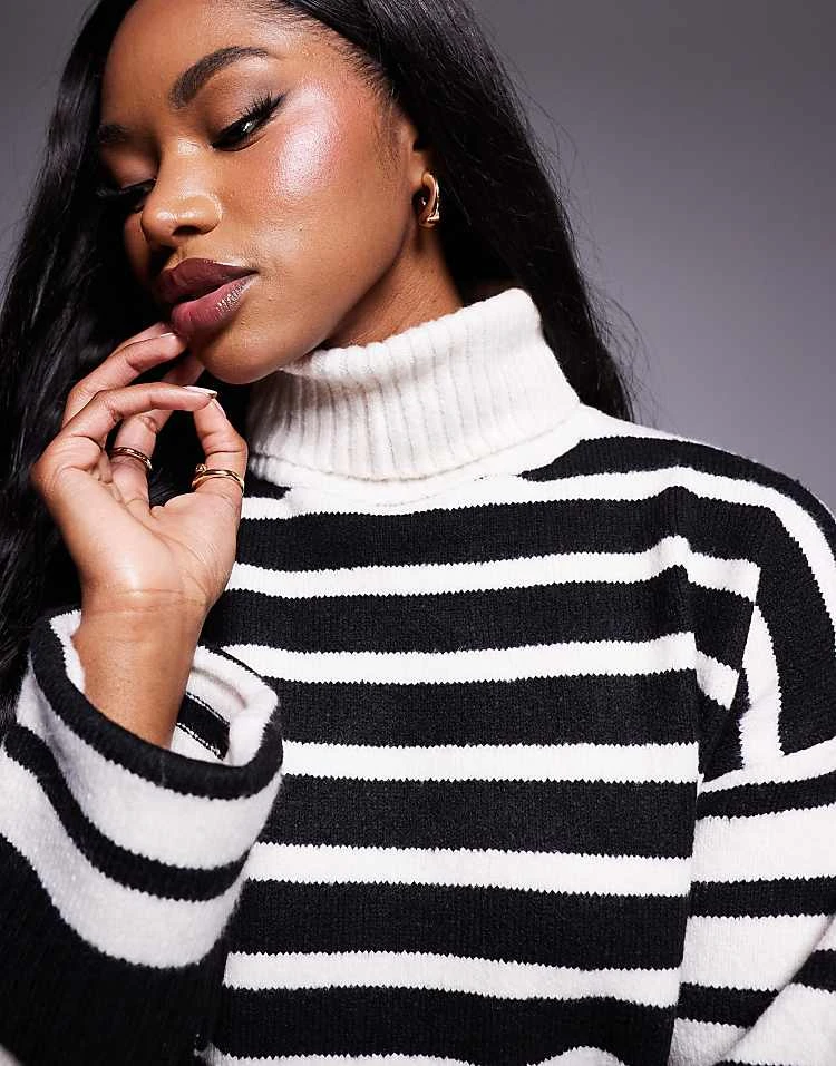 Be the first to review “In The Style Roll Neck Wide Sleeve Jumper In Mono Stripe For Women Black/white”