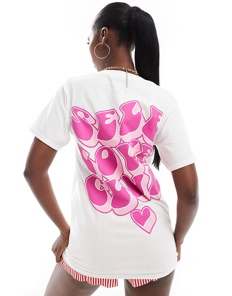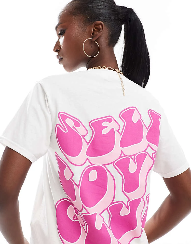 In The Style Self Love Club Slogan T-shirt In White For Women