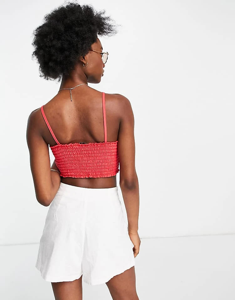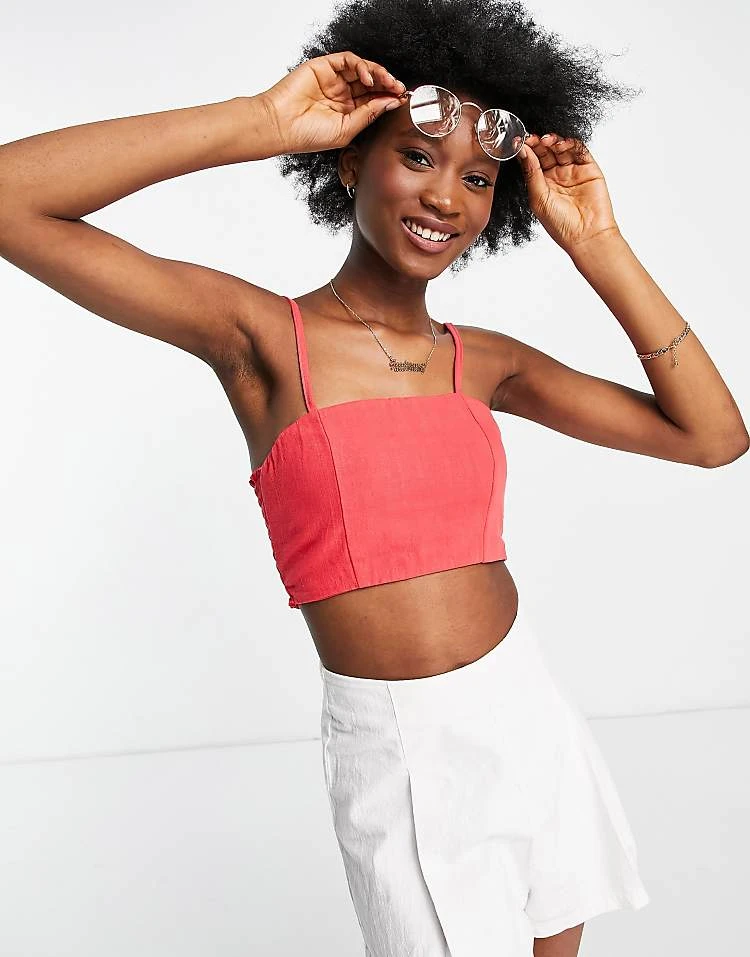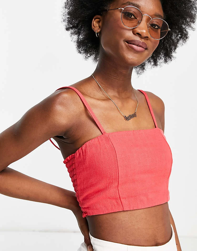 Be the first to review “In The Style Strappy Crop Top In Coral For Women”