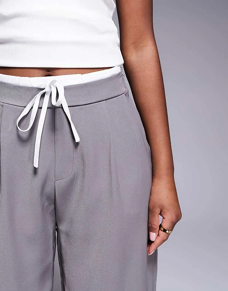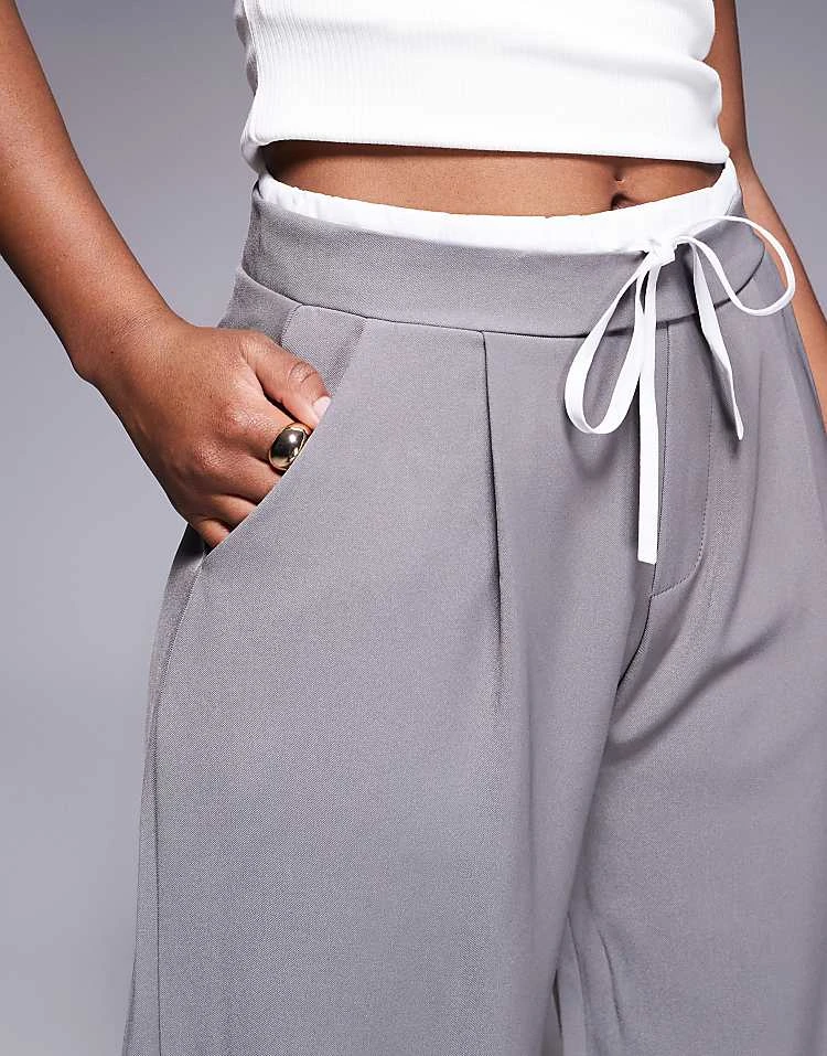 In The Style Tie Waist Contrast Relaxed Trousers In Grey For Women