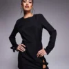 Wrap yourself in comfort with this foldover knitted mini dress. In a soft stone hue, it’s the perfect blend of snug and stylish — ideal for cooler days when you still want to turn heads.