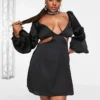 Wrap yourself in comfort with this foldover knitted mini dress. In a soft stone hue, it’s the perfect blend of snug and stylish — ideal for cooler days when you still want to turn heads.