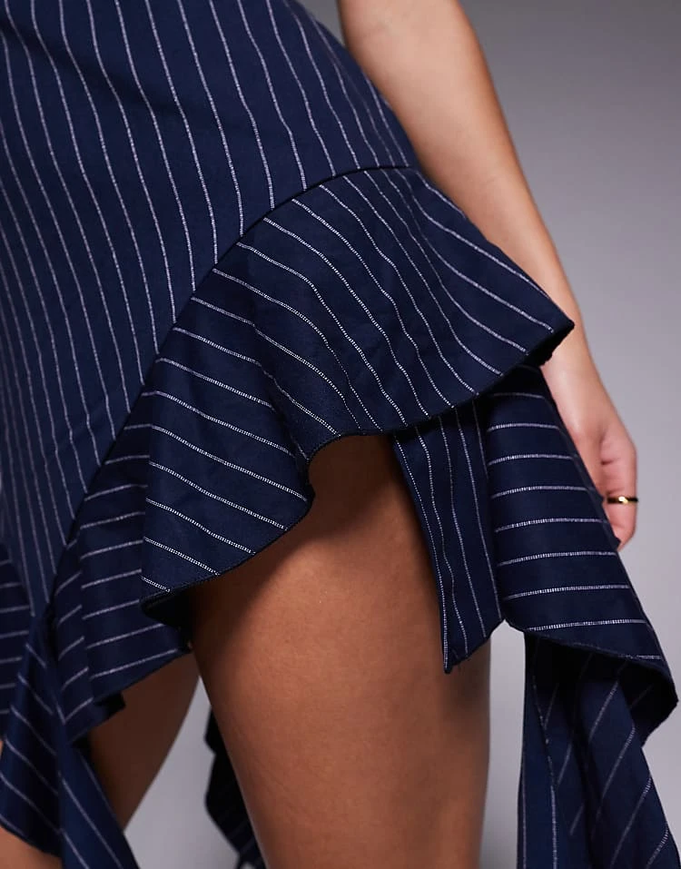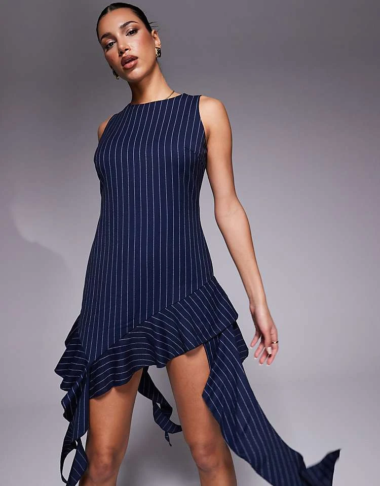 In The Style X Natalya Wright Exclusive Tailored Ruffle Hem Mini Dress In Navy Pinstripe For Women