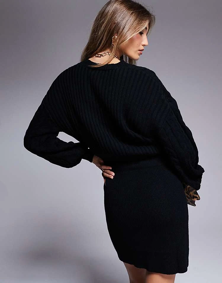 Be the first to review “In The Style X Perrie Sian Cable Knit V Neck Diamante Button Mini Dress In Black For Women”