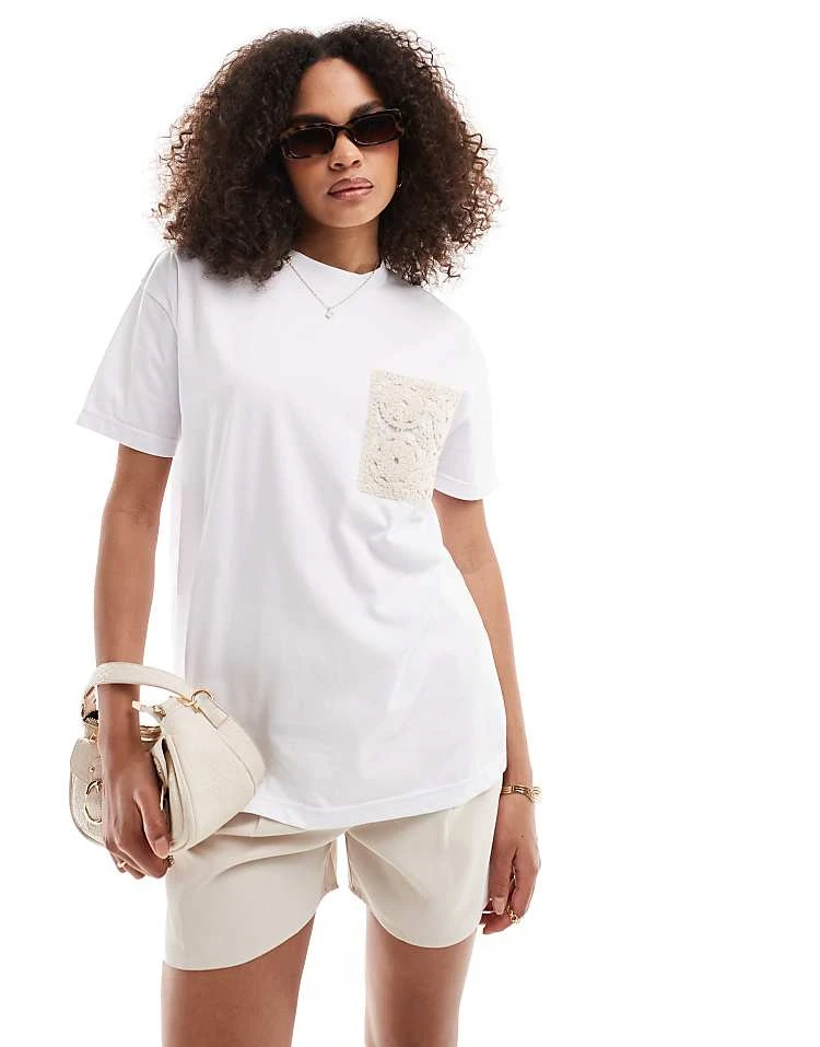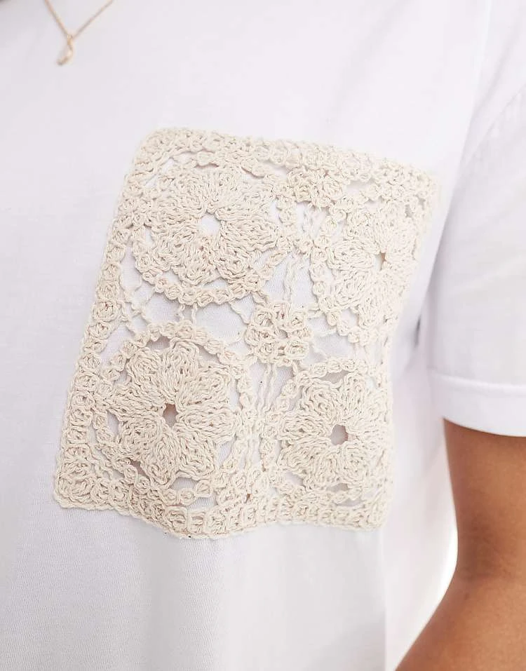 In The Style X Perrie Sian Crochet Pocket Detail T-shirt In White For Women