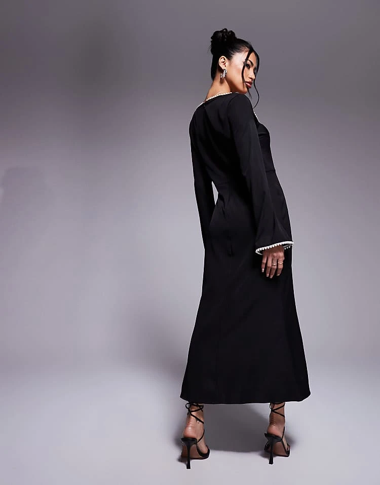 In The Style X Perrie Sian Exclusive Pearl Trim Midaxi Dress In Black For Women