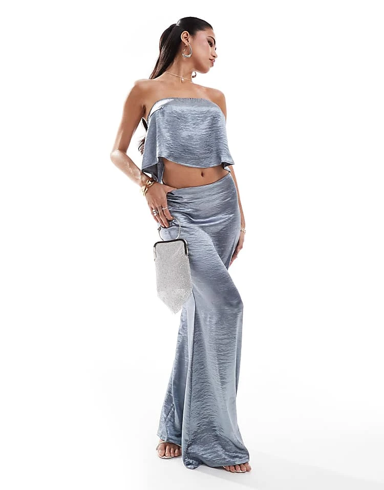 In The Style X Perrie Sian Exclusive Satin Top And Maxi Skirt Co-ord In Blue