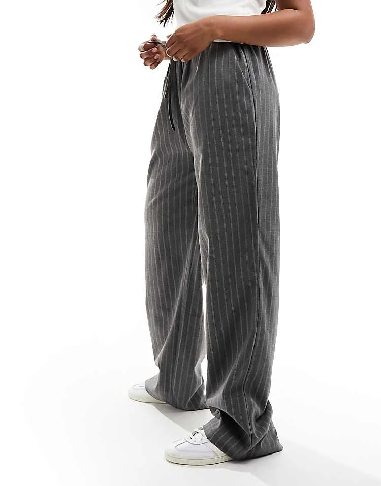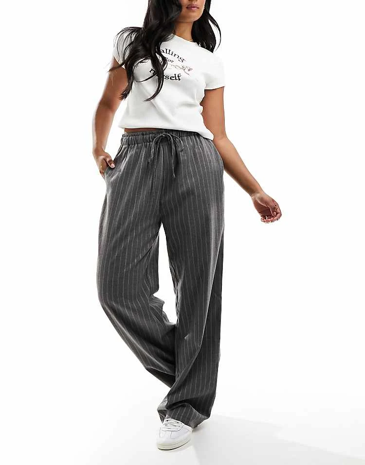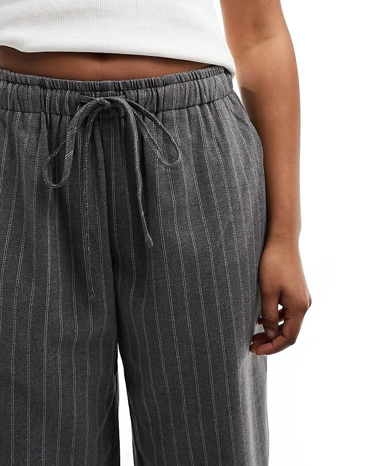 In The Style X Perrie Sian Wide Leg Drawstring Trouser In Grey Pinstripe For Women