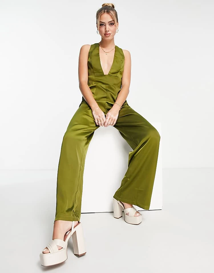 Be the first to review “In The Style X Yasmin Devonport Exclusive Plunge Front Wide Leg Jumpsuit In Lime For Women”