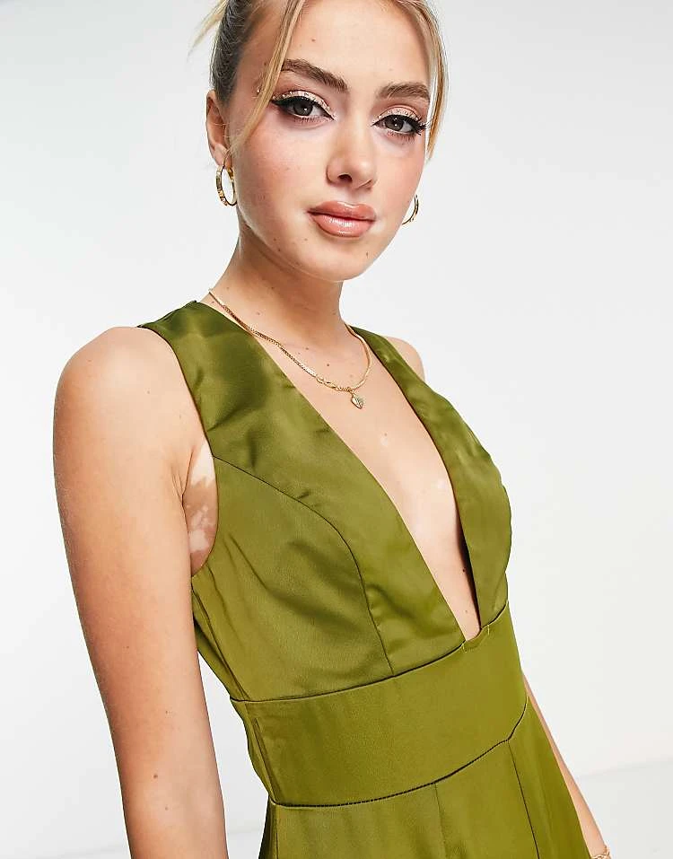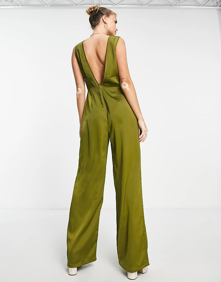 In The Style X Yasmin Devonport Exclusive Plunge Front Wide Leg Jumpsuit In Lime For Women